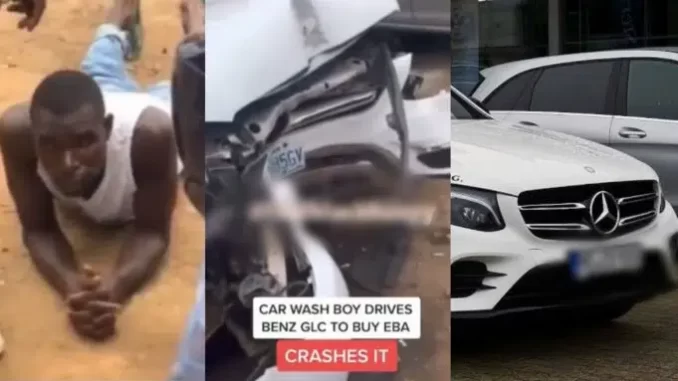 A man has reportedly crashed a customer’s Benz after it was dropped off for him to wash.