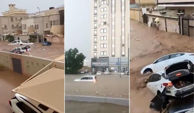Videos on social media showed cars being swept away by fast-moving currents, as muddy torrents poured through residential buildings and villas. Rows upon rows of cars can be seen in others, submerged and with windows broken.