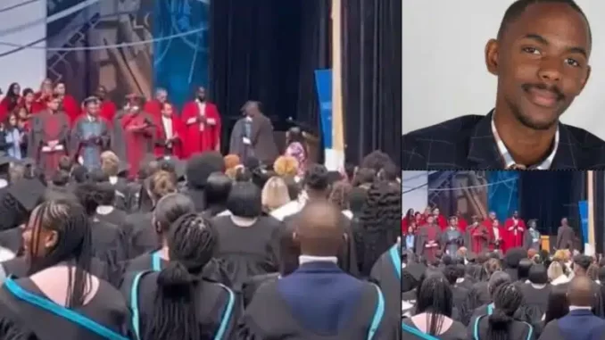 Elethu’s father accepted the certificate on his son’s behalf and was applauded with a standing ovation from other graduating students.