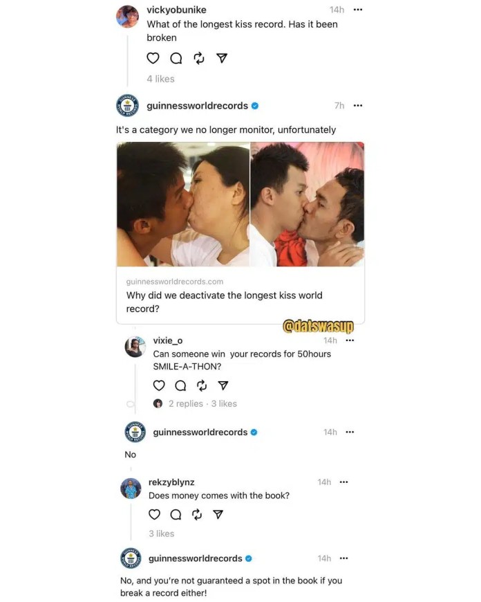 Reacting to the diverse record breaker from a lot of people, Guinness World Record has reacted to the kiss-a-thon and sex-a-thon by individuals.