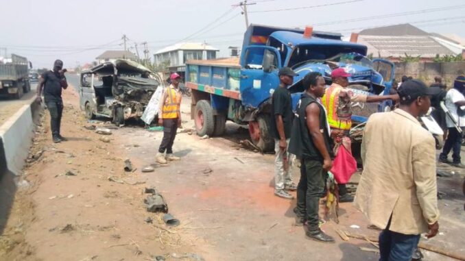 One of the eyewitnesses, who identified herself simply as Chinwe, and who lives in the area said, “The branded Toyota vehicle had about eight young men as the occupants and was speeding when it rammed into the tipper fully loaded with sand.