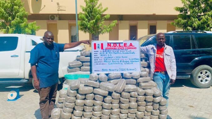 In the case of Shuaibu Nuhu Isa (a.k.a Don), 55, and Zidon Zurga, 50, they were arrested by NDLEA operatives on 25th November 2024 along Numan- Yola road with 500.800kg skunk, a strain of cannabis, concealed in a pilot Toyota Hilux vehicle marked Lagos NT 829 AAA and a Prado SUV with a fake presidency number plate 01B-266 FG.