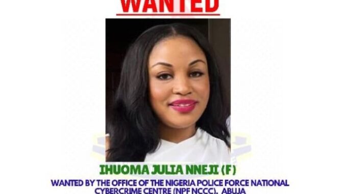 The Nigeria Police Force has declared Ihuoma Julia Nneji, daughter of ABC Transport tycoon Frank Nneji, wanted over a barrage of cybercrime allegations.