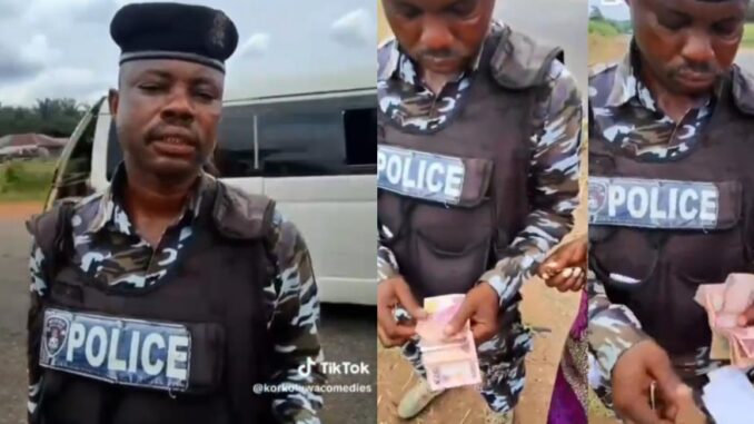 The TikTok user who posted the video captioned it: “Travelers who do not have ECMR which the IGP has suspended were asked to pay sum of 5,000 or buy 5 Litres of fuel by this police officer along Benin bypass way.”