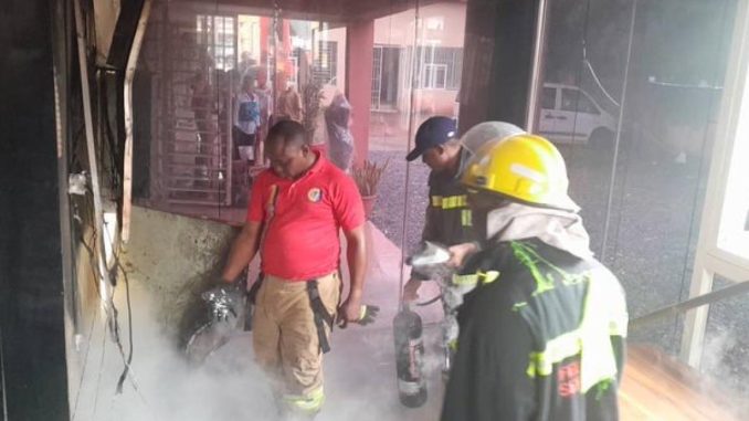 The fire outbreak prompted a response from the Federal Fire Service (FFS) that prevented extensive damage.