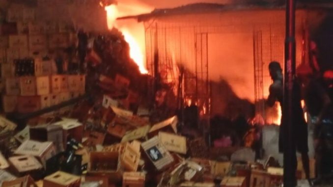When visited at about 8am, our correspondent reports that the fire was still burning, affecting several rooms and shops within a large compound.