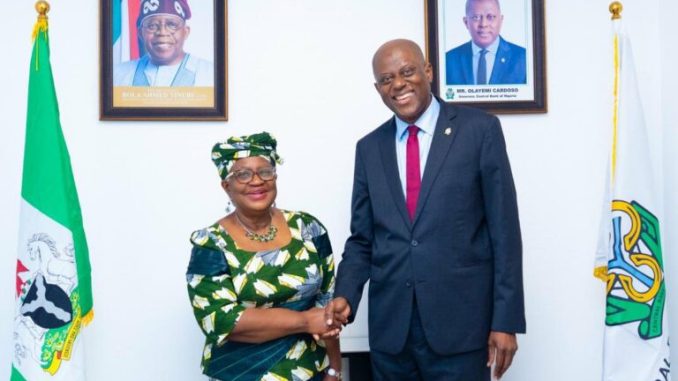 The Governor of the Central Bank of Nigeria, Mr. Olayemi Cardoso, on Thursday, August 14, 2025, hosted the Director-General of the World Trade Organisation, Dr. Ngozi Okonjo-Iweala, at the Bank’s headquarters in Abuja.