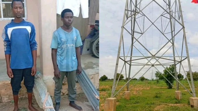 The duo was reportedly caught in possession of 24 pieces of dismantled tower members believed to have been taken from Tower T-148 of the 132kV Katsina–Daura line near Yar Riga/Sile Uku Village.