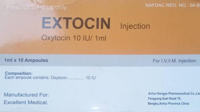 NAFDAC said the product details include falsified names: Gold Vision Oxytocin Injection 10IU, A-tocin Injection, Extocin Injection, Claxitodin Injection, and the fake NAFDAC Registration Number: A4-9566.