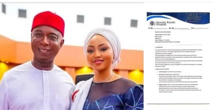 The report, issued by Serenity Royale Hospital in Abuja and signed by its Managing Director/Head of Clinical Services, Dr. Adekunle Adesina, covers her detoxification programme from September 9 to October 15, 2025. It indicates that Daniels tested positive for multiple psychoactive substances, including m@rijuana, c0caine, m0rphine, 0piates and high levels of alc0hol.