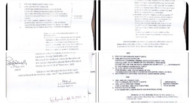 Presiding Justice Ladiran Akintola, at the renewed hearing today , Friday 14th November, 2025 heard arguments from all parties, including INEC’s counsel after which it reiterated the court’s November 3 interim order, mandating INEC to attend and monitor the PDP National Convention as scheduled