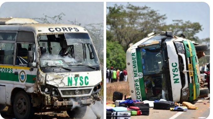The 18-seater bus, conveying the young graduates to the NYSC Orientation Camp in Gombe State, crashed earlier today along a northern highway.