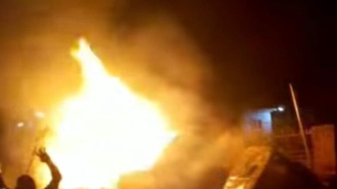 Residents and eyewitnesses told the media on Sunday that the collision caused a loud explosion, which immediately engulfed the tanker and spread rapidly to adjoining shops.