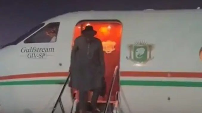 Viral videos of Jonathan’s return to Abuja confirmed that the plane belongs to the République de Côte d’Ivoire, as boldly displayed on its fuselage.