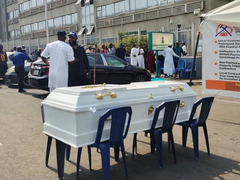 PICTORIAL: Protesting Contractors Block Finance Ministry With Coffin, Demand N500bn Debt Settlement