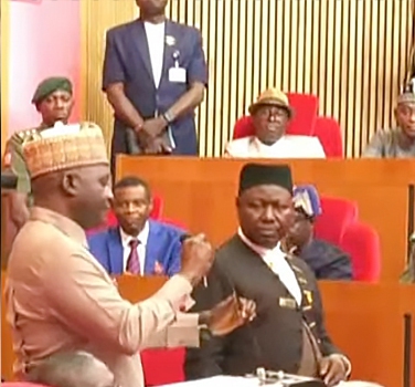 After several minutes of disruptions, the Senate President, Godswill Akpabio, rose, an action which, according to the rule book, signifies a call for order.