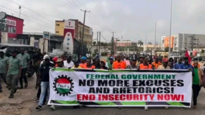 The NLC said the protests were part of a coordinated nationwide action aimed at drawing attention to the growing insecurity and pressing the government to take immediate and concrete measures to address the crisis.
