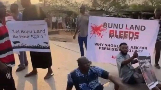 In a video obtained by SaharaReporters, the demonstrators were seen singing while holding placards with bold inscriptions such as “Bunuland Bleeds” and “Why Should We Ask for Permission to Live?”