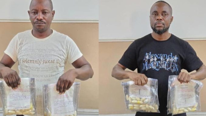 Body scans confirmed they had ingested narcotics. Under observation, Mbandu excreted 76 wraps weighing 920 grams, while Ngoma expelled 108 pellets weighing 1.33 kilograms.